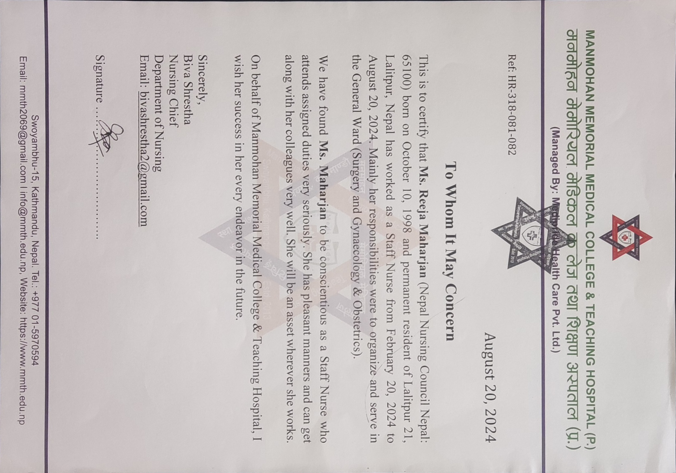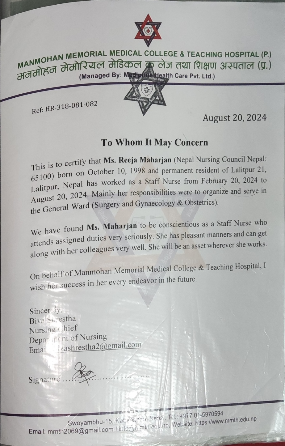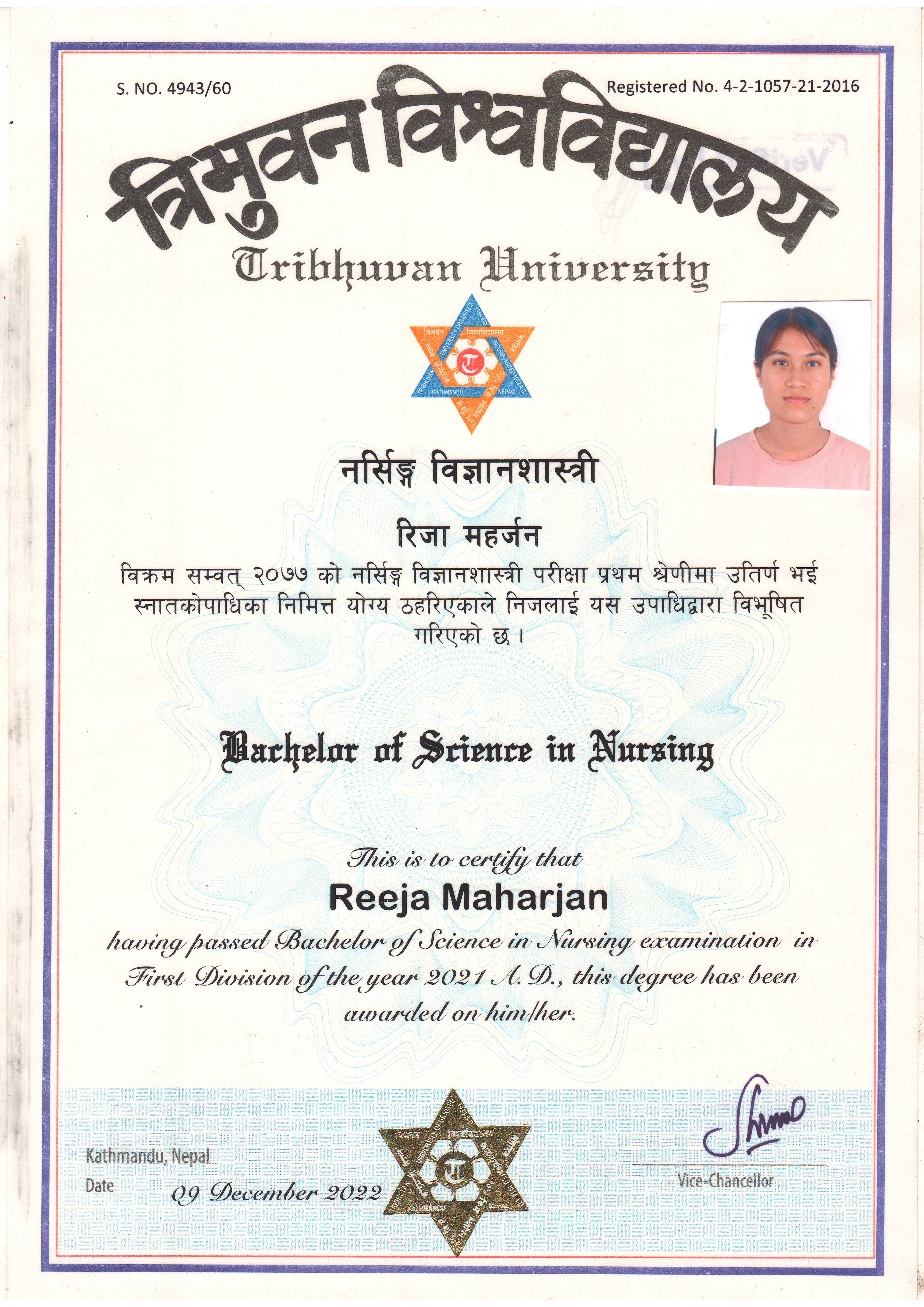 Licensed RN with Nepal Nursing Council after National Licensure Examination for Nurses.